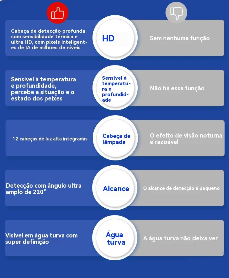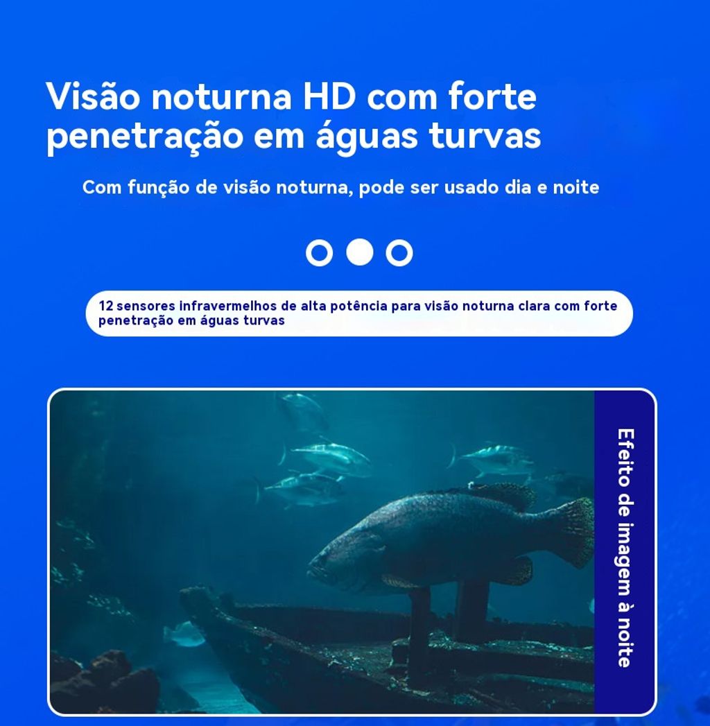 Equipado com uma câmera de alta definição, suporta visão noturna infravermelha sem luz, permitindo visualizar claramente o fundo da água durante o dia e à noite, sem restrições de iluminação.