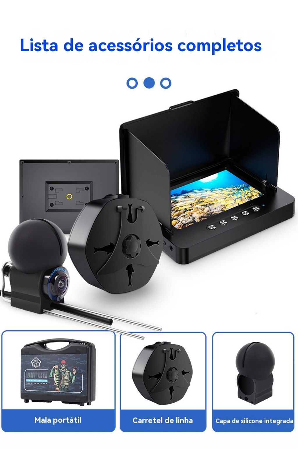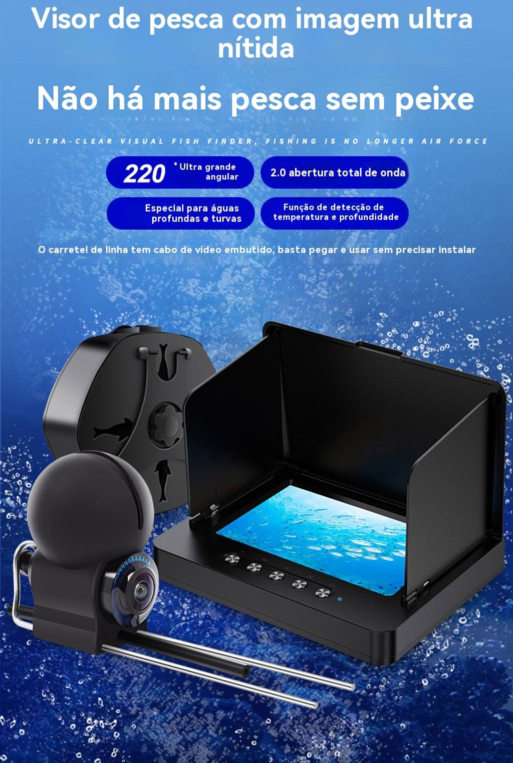 Novo detector de peixes subaquático de alta definição com câmera panorâmica, equipamento de pesca para visualizar o fundo do mar e localizar peixes