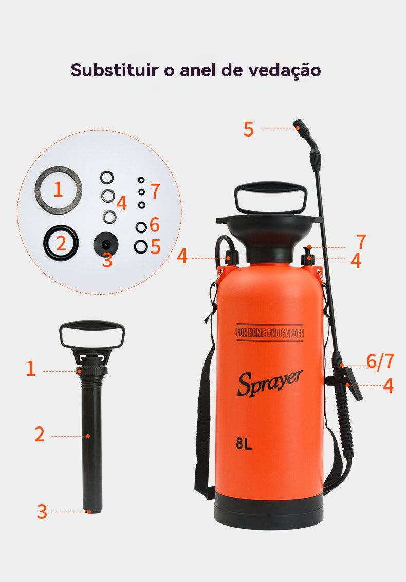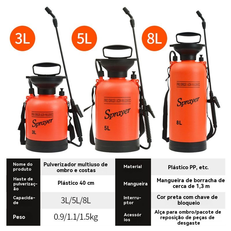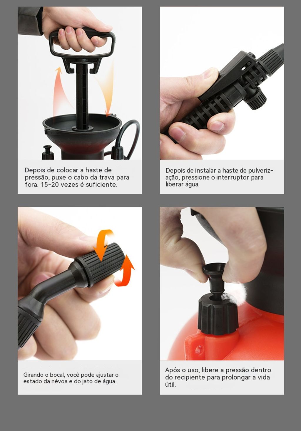 - Multifuncionalidade: Ideal para regar plantas, aplicar fertilizantes, pesticidas, e realizar desinfecção doméstica e profissional.