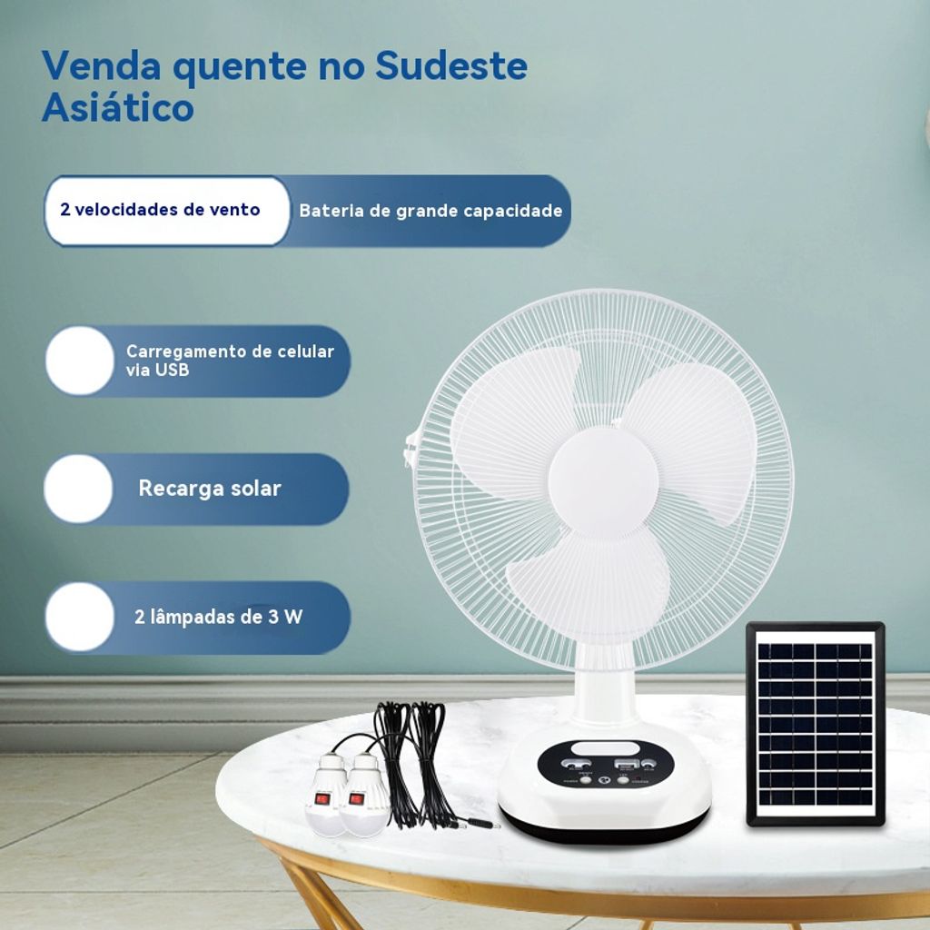 Ventilador de mesa solar recarregável portátil exterior, forte vento, longa autonomia