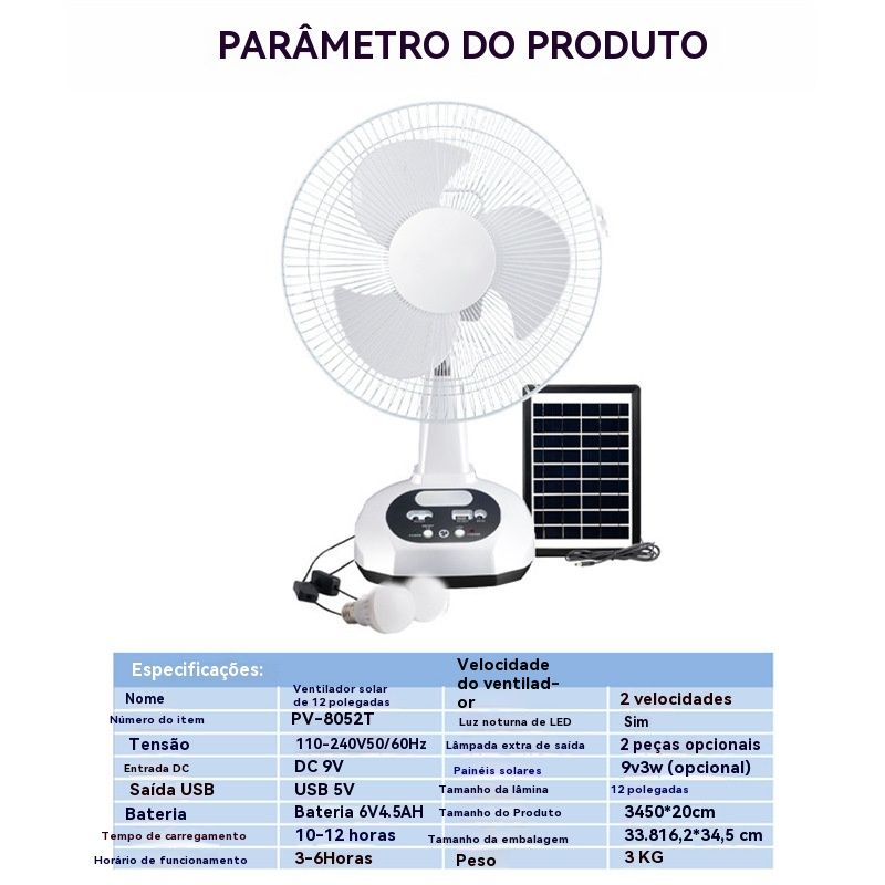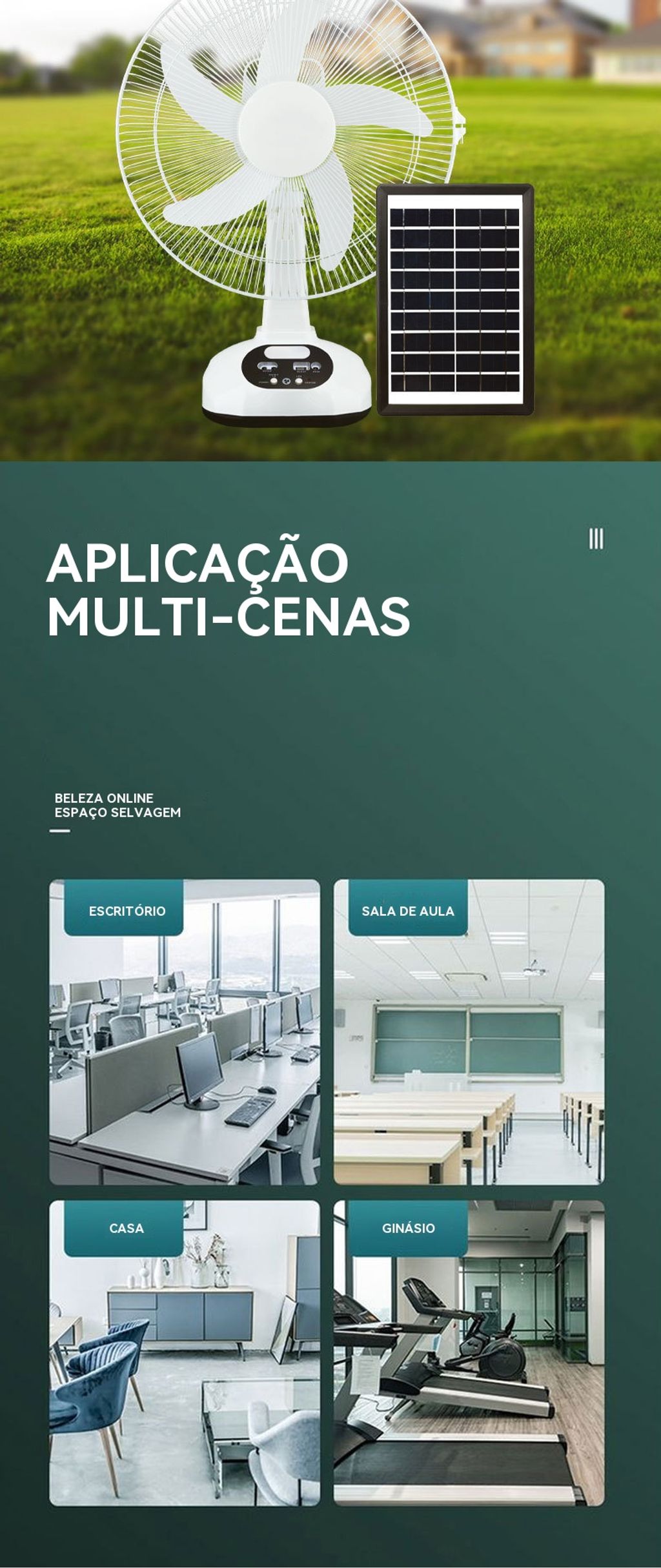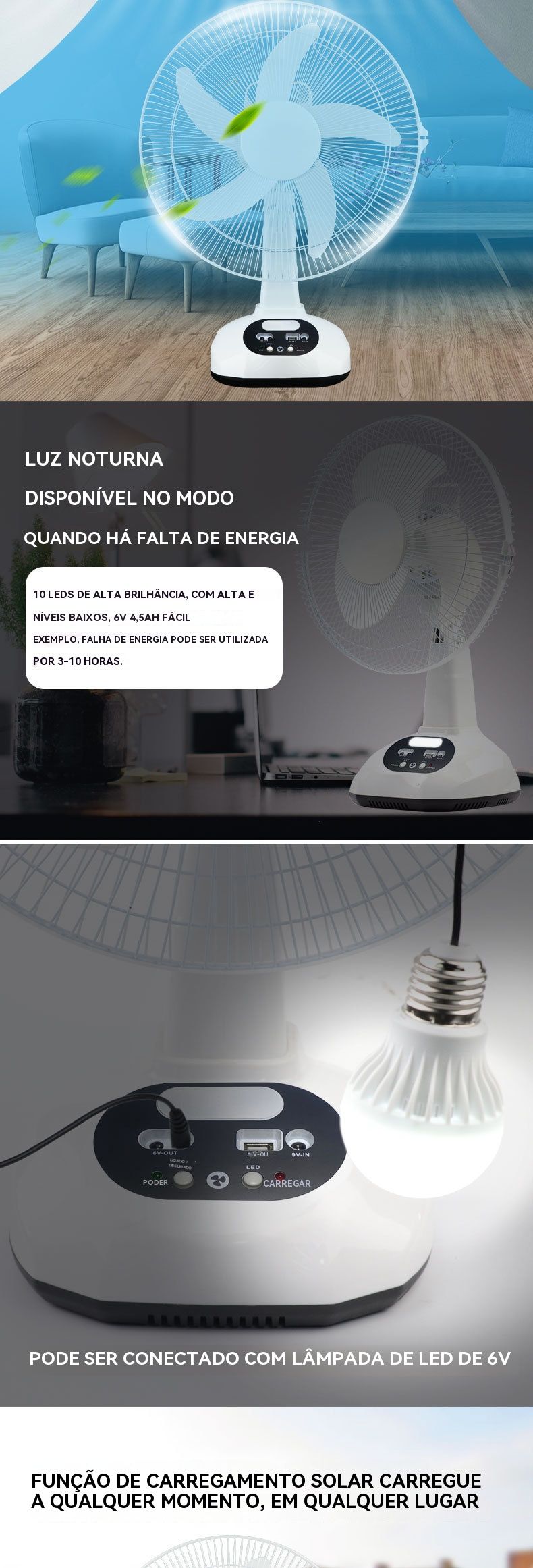 • Ventilador solar multifuncional: ideal para áreas com energia instável