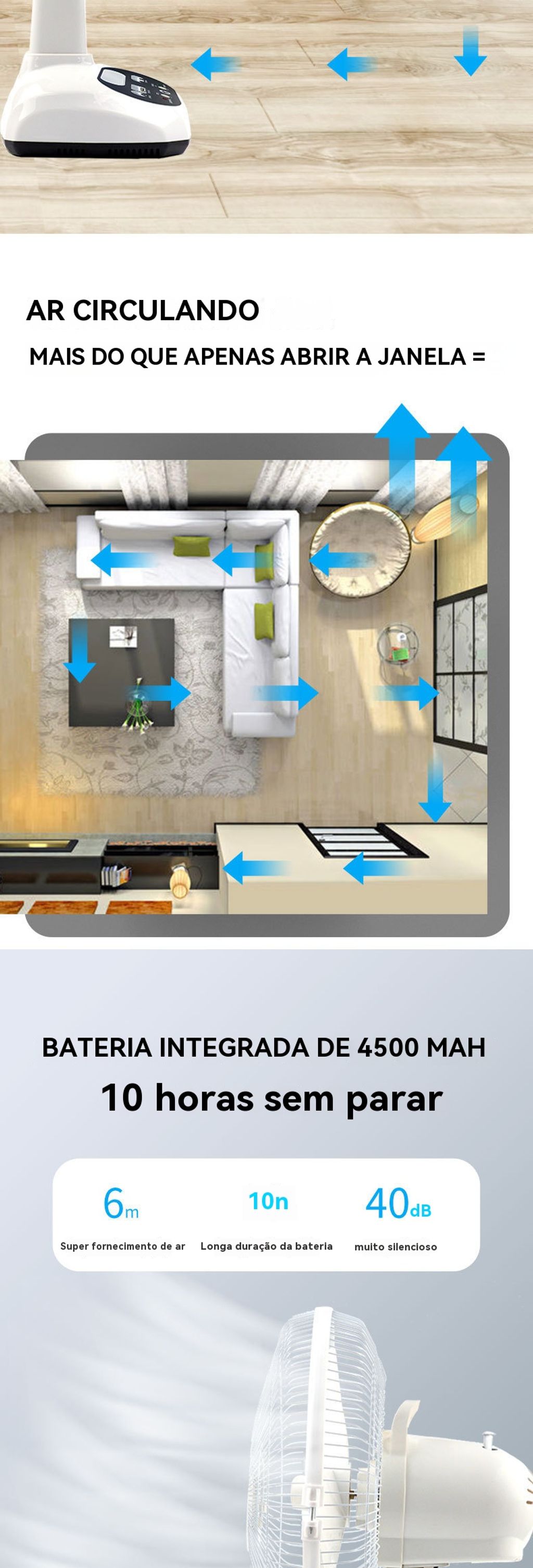 Funciona como ventilador de emergência na loja, mantendo a ventilação básica durante apagões, enquanto carrega dispositivos de recebimento para garantir o funcionamento normal do negócio.