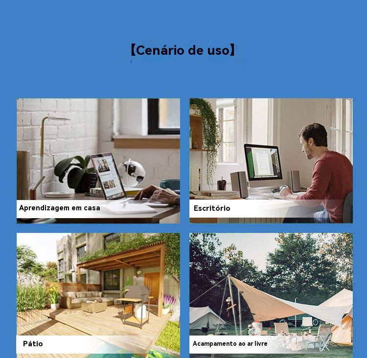 A função de carregamento solar armazena energia durante o dia com a luz solar. À tarde, ao abrir a feira, o ventilador mantém o vendedor fresco, enquanto a porta USB carrega o celular de recebimento e as lâmpadas auxiliam na iluminação dos produtos.