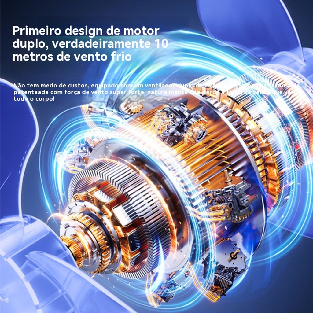 Escritório / Mesa de Trabalho: Funciona como um pequeno ventilador de mesa, proporcionando refrigeração pessoal com um design silencioso que não perturba os colegas.